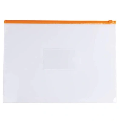 Pack of 12 A4+ Foolscap Clear Zippy Bags with Orange Zip