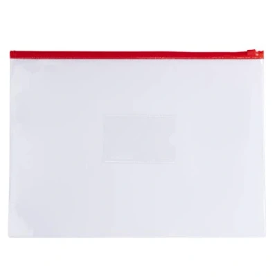 Pack of 12 A4+ Foolscap Clear Zippy Bags with Red Zip