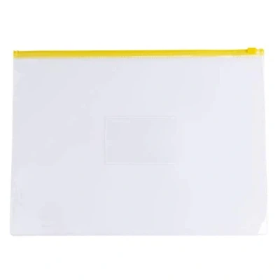 Pack of 12 A4+ Foolscap Clear Zippy Bags with Yellow Zip
