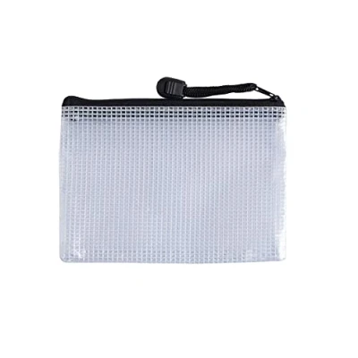 Pack of 12 A6 Black PVC Mesh Zip bags. Made from durable PVC with white mesh. Mesh bags ideal for documents, stationery and other items. Durability allows it to be used many times. Ideal for home, school and office use. Coloured zipper with hang rope for easy open and closure. Size: 165x120mm. Thickness 250microns. Available in a range of colours and sizes from the Janrax range.