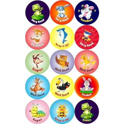 Pack of 120 Reward Stickers for Children (30 mm) Animal Self Adhesive Waterpoof Teacher Kids Sara Prints®