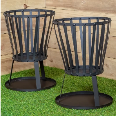 Pack of 2 35cm Black Steel Garden Patio Log Burner Fire Pit Basket