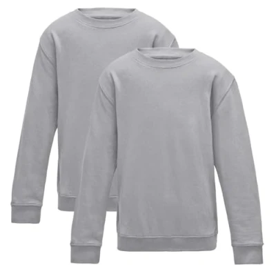 (Pack of 2) Boys Girls School Jumper Round Neck Fleece Crew Sweatshirt Uniform Ages 3 16 Years