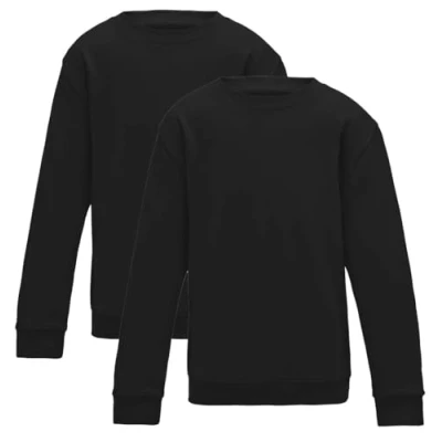 (Pack of 2) Boys Girls School Jumper Round Neck Fleece Crew Sweatshirt Uniform Ages 3 16 Years