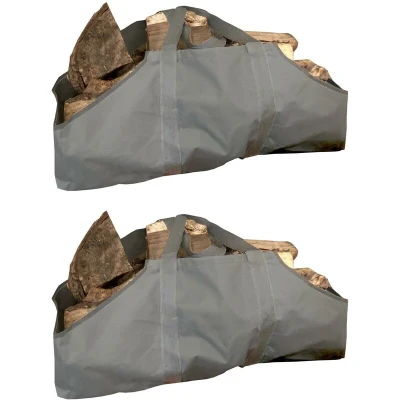 Pack of 2 Canvas Firewood Log Carrier French Grey Bag Tote Wood Waterproof Double Handled
