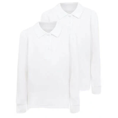 Pack of 2 Girls Long Sleeve School Uniform Polo White 100% Cotton 3 16 Years