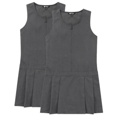 Pack of 2 Girls Pleated School Pinafore (Heaton) Heart Zip Grey Black 3 16 Years