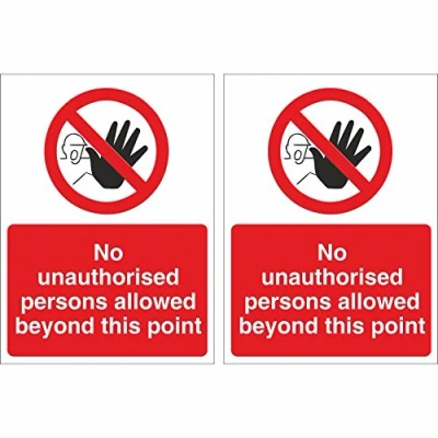 Pack of 2 No Unauthorised Persons Allowed Beyond This Point Signs 150mm x 200mm Self Adhesive