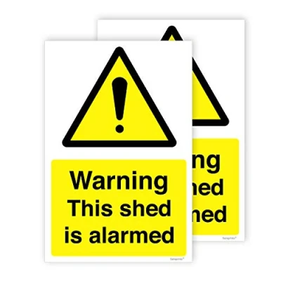Warning This shed is alarmed Signs - 100mmx150mm. Material: High Gloss Permanent 5 Year Premium Self Adhesive. Self adhesive Adheres securely to any dry surface. Simply, peel and stick the sticker onto a clean, smooth surface. Just peel the sticker from the backing paper and apply it on a dry surface. Self Adhesive Waterproof Durable Vinyl Sticker.