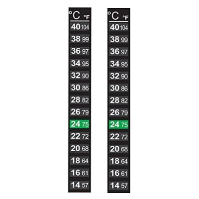 FAST AND ACCURATE READINGS- Easy to read Centigrade/Fahrenheit Dual Scale. No Mercury ADHESIVE BACKED- Will withstand washing on the surface it is applied Will stick on glass, metal and plastic surfaces Thermometer strips measure 115mm by 15mm. Pack of 2. No batteries are needed to use this product Suitable as a general thermometer- Use in the home, school or at work. It is effective for reading temperatures in greenhouses or plant nurseries
