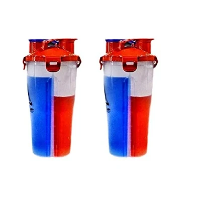 PACK OF 2 X SHAKE THE DUAL PROTEIN SHAKER PERFECT FOR PRE POST AND DURING WORKOUT SUPPLEMENTS LEAK PROOF LID BPA FREE 2X 350ML COMPARTMENTS 700ML BOTTLE