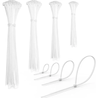 Pack of 200 Cable Ties Set 100/150/200/300 mm (50 Pieces Each) Various Sizes, Super Durable & Self Locking for Management, Home Workshop (White, Pieces)