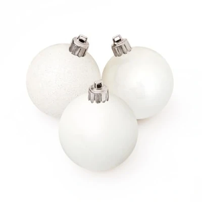 ManoManoGeneral description 24 Pack Shatter-proof Christmas Baubles in various finishes, designed to add a festive touch to your holiday decorations. Each pack contains 24 high-quality baubles, with 8 of each design and finish. Technical specifications Diameter: 6 cm
