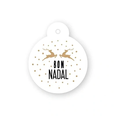 24 Pack "Bon Natal" Christmas Ball Card with Reindeer Illustration Measures 4 cm in diameter They come perforated to tie them to twine or ribbon. Christmas gift decorating accessory. Christmas style and elegant, Manufacturer: Mopec
