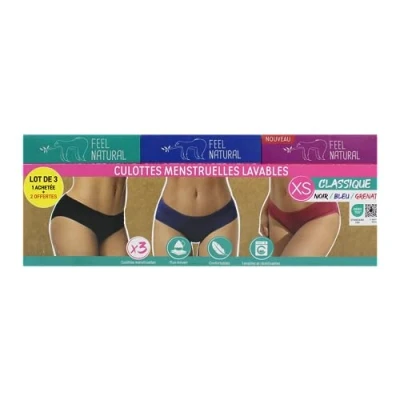 Pack of 3 classic briefs (1 black + 1 garnet + 1 blue) XS - Feel Natural