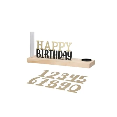 Pack of 3 Tealight Candle Holder, Lettering, Wood, Natural Colours, PU 3, L. 10 cm, W. 30 H. cm