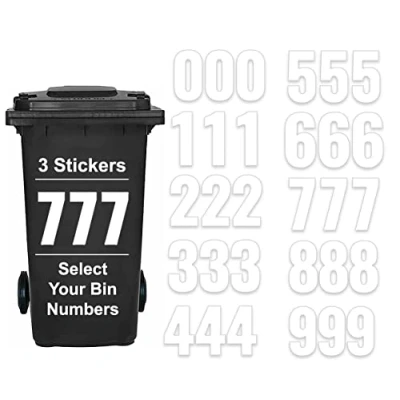 Pack Contains: 3 x Bin Labels for Wheelie Bins Number 7, size 17 cm. Material: Durable numbers for bins self-adhesive vinyl, weather-resistant and waterproof, suitable for outdoor use. Easy Application: Bin stickers simply peel and stick on any clean, dry surface. Usage: Bin numbers for wheelie stickers suitable for wheelie bins, garbage bins, dustbins, doors, and mailboxes. Origin: Manufactured and dispatched from the UK.