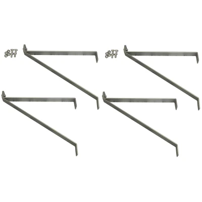General description These Aluminium Greenhouse Shelving Brackets are designed to provide sturdy support for shelving in your greenhouse. This pack includes four brackets that are easy to install and can accommodate shelves of various sizes, depending on the shelving material used. Technical specifications Length from wall: 27 cm (10 inches) Width: 2 cm Depth: 23 cm Front lip depth: 3 cm Installation Includes cropped head bolts for fixing to the wall of a greenhouse. Simple installation process. Usage Ideal for creating custom shelves in greenhouses. Supports various shelving materials (shelf not included).