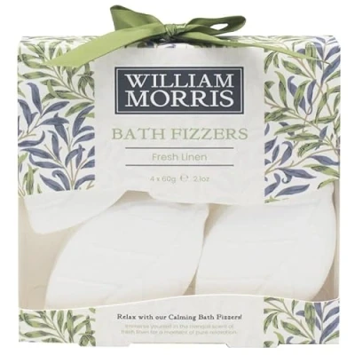 Pack of 4 Bath Fizzers (Fresh Linen) William Morris' Willow Bough Design
