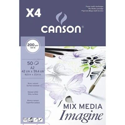 Pack of 4 Glued Pads, A2, 50 Sheets, Canson Mix Media Imagine, Fine Grain 200 g