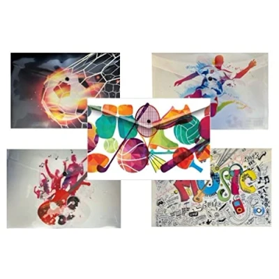 Pack of 4 Stud Wallet A4 Colourful Pattern Document File Folder Plastic Folder Popper Wallet A4 Paper Size Document File