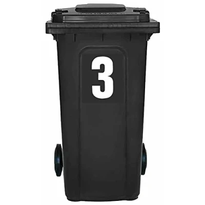 Pack of 4 White Bin Number 3 Stickers (17 cm) Vinyl Bin Stickers Packwith® #PBN10-3