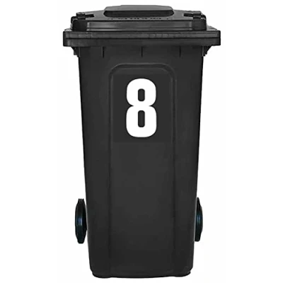 Pack of 4 White Large Bin Number 8 Stickers (17 cm) Waterproof Stikcers Packwith® #PBN10-8