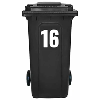 Pack of 4 White Wheelie Bin 16 Sticker (17 cm) Waterproof Bin Number Stickers Packwith® #PBN10-16
