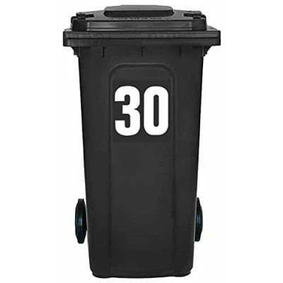 Pack of 4 White Wheelie Bin 30 Sticker (17 cm) Waterproof Bin Number Stickers Packwith® #PBN10-30