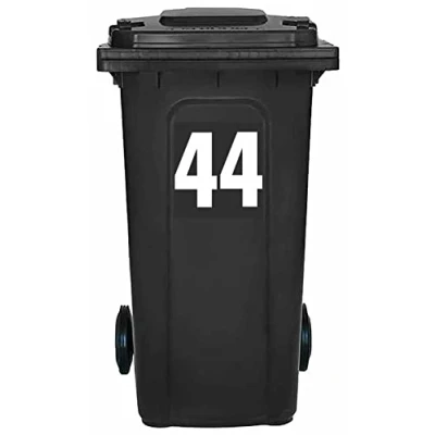 Pack of 4 White Wheelie Bin 44 Sticker (17 cm) Waterproof Bin Number Stickers Packwith® #PBN10-44