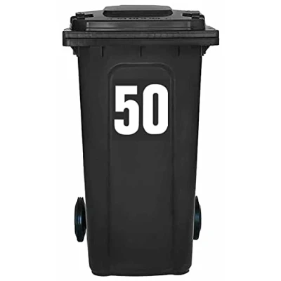 Pack of 4 White Wheelie Bin 50 Sticker (17 cm) Waterproof Bin Stickers Packwith® #PBN10-50