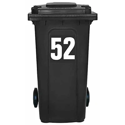 Pack of 4 White Wheelie Bin 52 Sticker (17 cm) Waterproof Number Stickers Packwith® #PBN10