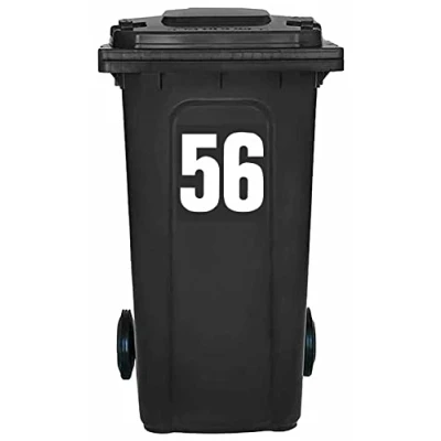 Package Includes: Pack of 4 white wheelie bin stickers displaying the number 56. Material: Wheelie bin stickers printed on environmentally friendly vinyl material that is waterproof and durable. Usage: Suitable for smooth surfaces such as doors, windows, lockers, and storage containers. Easy to Use: Simply peel the sticker from the backing paper and apply it to a clean, dry surface. Origin: Manufactured and dispatched from the UK.