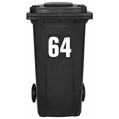 Packwith Pack of 4 White Wheelie Bin 14 Sticker (17 cm) Waterproof Stickers PBN10