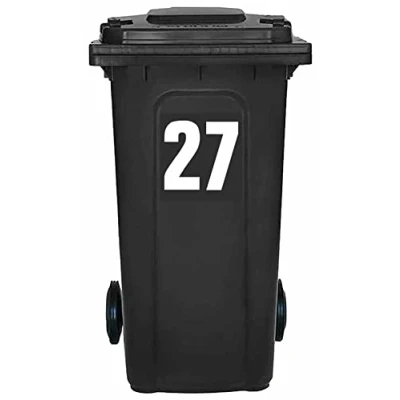 Pack of 4 White Wheelie Bin Number 27 Stickers (17 cm) Vinyl Labels Packwith® #PBN10-27