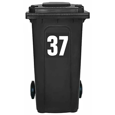 Pack of 4 White Wheelie Bin Number 37 Stickers (17 cm) Vinyl Labels Packwith® #PBN10-37