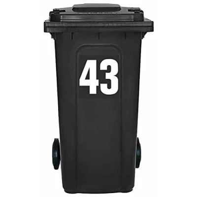 Pack of 4 White Wheelie Bin Number 43 Stickers (17 cm) Vinyl Labels Packwith® #PBN10-43