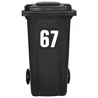 Pack of 4 White Wheelie Bin Number 67 Stickers (17 cm) Vinyl Labels Packwith® #PBN10-67