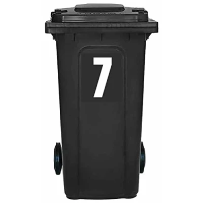 Package includes: 4 x white number 7 stickers. Our trash can stickers are printed on high quality environmentally friendly material, waterproof and durable. SIZE AND USE - Perfect for any smooth surface including doors, windows, cabinets EASY TO USE - Easy to apply, just peel from backing paper and apply to a dry surface. Product: Made in the UK