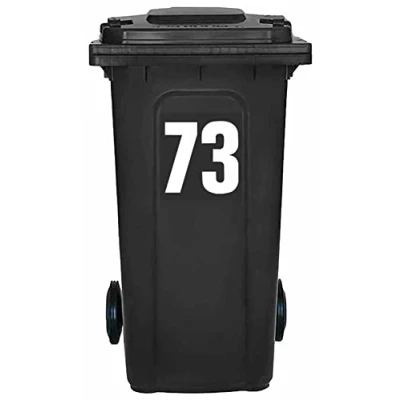 Pack of 4 White Wheelie Bin Number 73 Stickers (17 cm) Vinyl Labels Packwith® #PBN10-73