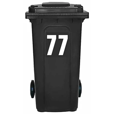 Pack of 4 White Wheelie Bin Number 77 Stickers (17 cm) Vinyl Labels Packwith® #PBN10-77