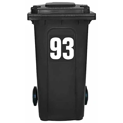 Pack of 4 White Wheelie Bin Number 93 Stickers (17 cm) Vinyl Labels Packwith® #PBN10-93