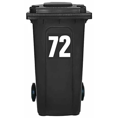 Package Includes: Pack of 4 wheelie bin stickers featuring the number 72. Material: Wheelie bin stickers printed on environmentally friendly, waterproof, and durable vinyl material. Usage: Suitable for smooth surfaces such as doors, windows, lockers, and storage containers. Easy to Use: Simply peel the sticker from the backing paper and apply it to a clean, dry surface. Origin: Manufactured and dispatched from the UK.