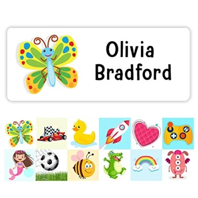 Pack of 42 Butterfly Personalised Name Stickers for Water Bottles (55 x 22 mm) Self Adhesive Waterproof Labels Lunch Boxes Limited