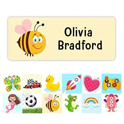 Pack of 42 Honeybee Kids Labels (55 x 22 mm) Self Adhesive Waterproof Personalised Name Stickers for Water Bottles School Items Stickers Limited