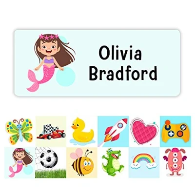 Pack of 42 Mermaid Dishwasher Proof Labels (55 x 22 mm) Self Adhesive Waterproof Personalised Name Stickers for Water Bottles School Essentials Limited