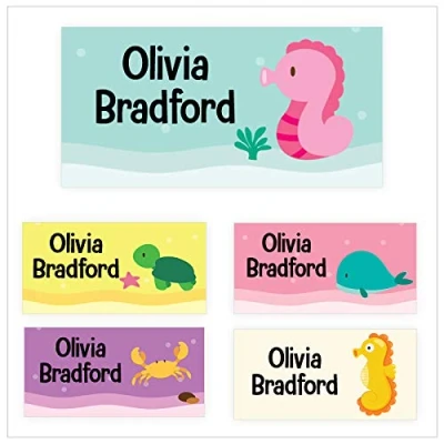 Pack of 45 Animals Personalised Name Stickers for Water Bottles (40 x 20 mm) Self Adhesive Waterproof School Stationeries Limited