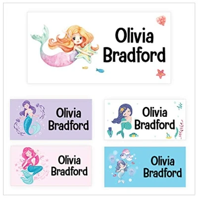 Pack of 45 Mermaid School Name Stickers (40 x 20 mm) Self Adhesive Waterproof Personalised Name Stickers for Water Bottles Stickers Limited