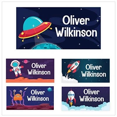 Pack of 45 Satellites Name Labels for Kids (40 x 20 mm) Self Adhesive Waterproof Personalised Stickers Water Bottles Daycare Limited