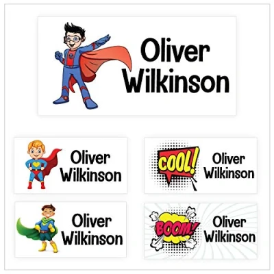 Pack of 45 Super Hero Dishwasher Proof Labels (40 x 20 mm) Self Adhesive Waterproof Personalised Name Stickers for Water Bottles School Essentials Stickers Limited